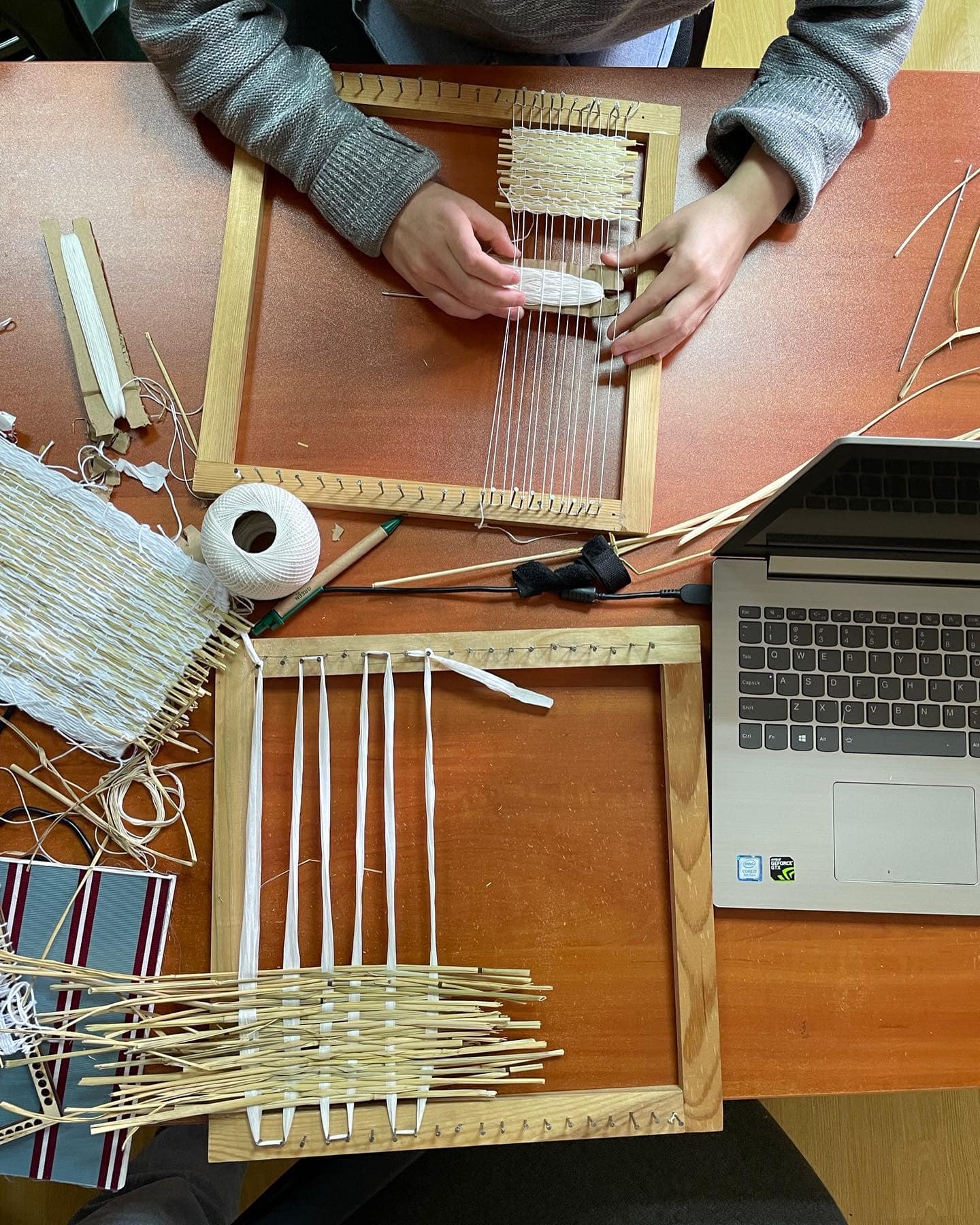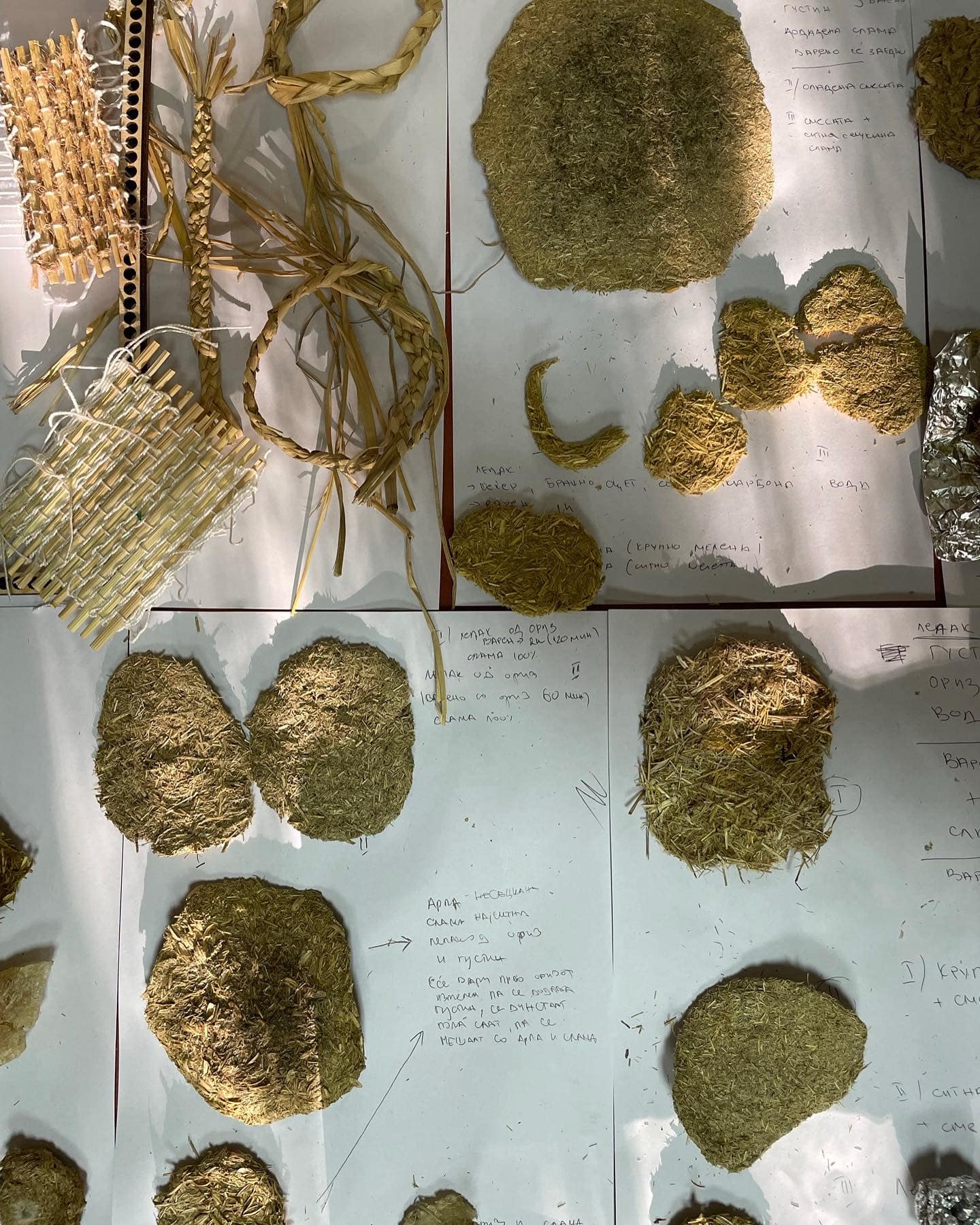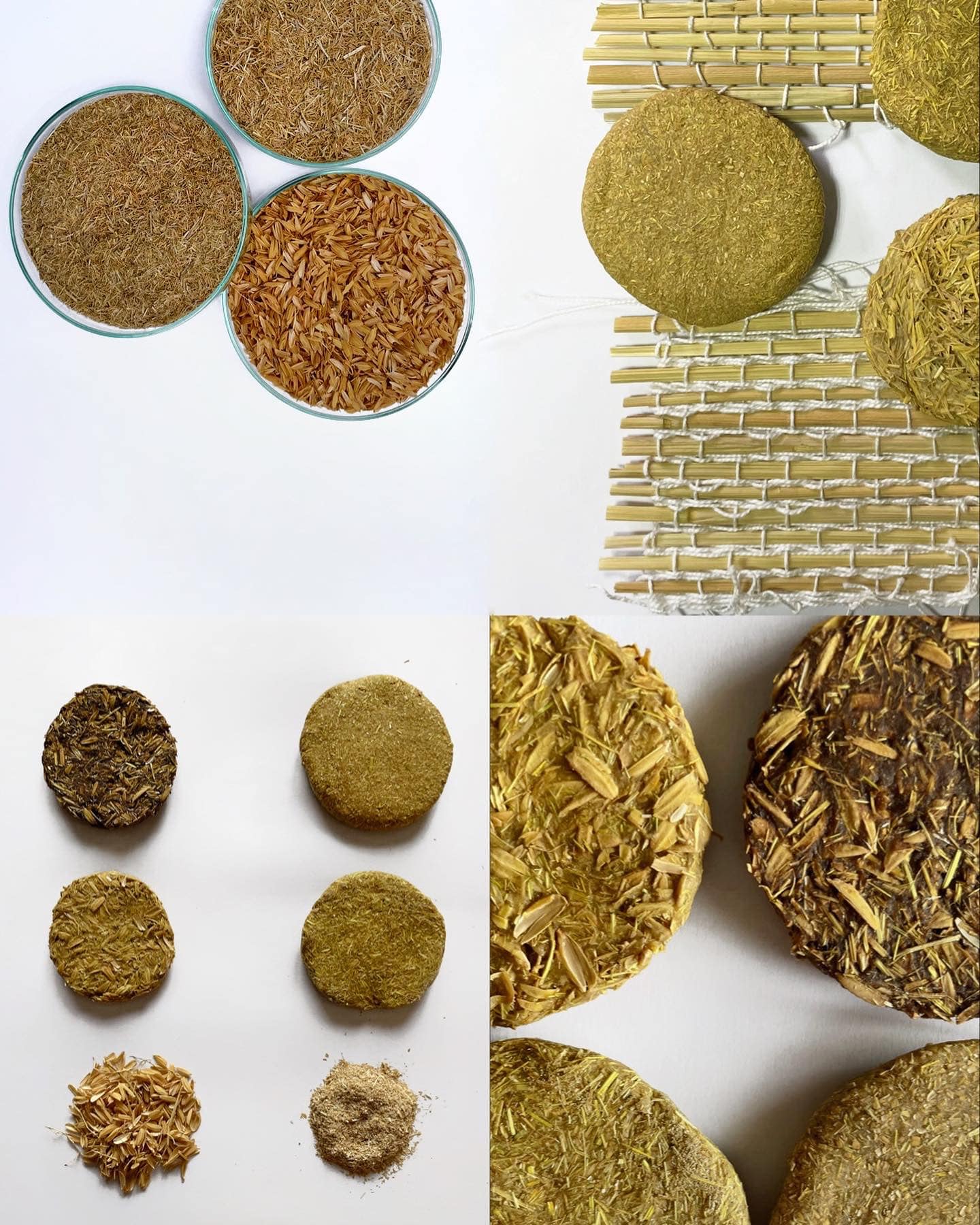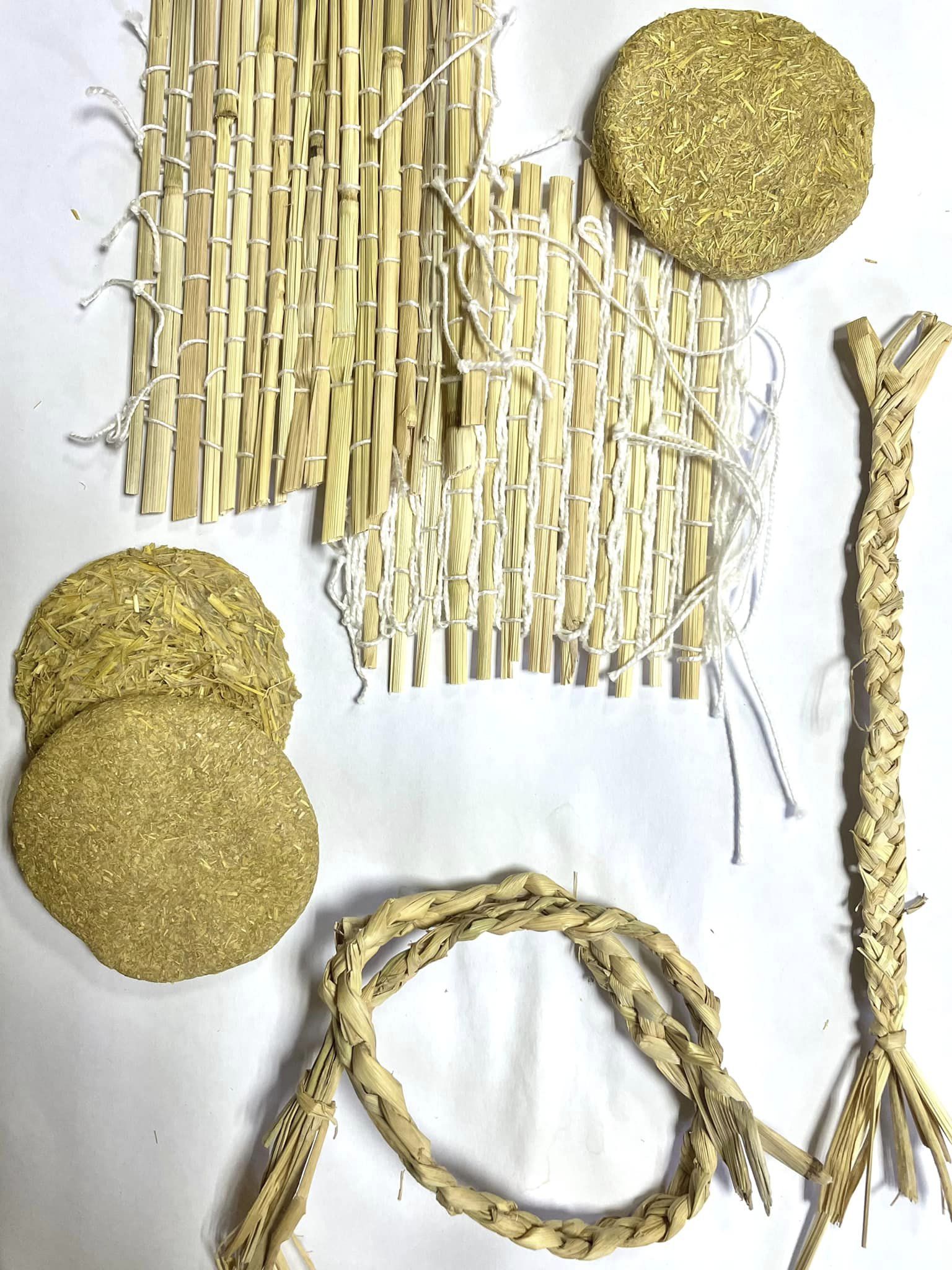 Crafting new materials from the rice straw and husk into functional shapes: making biomaterials and hand weaving.