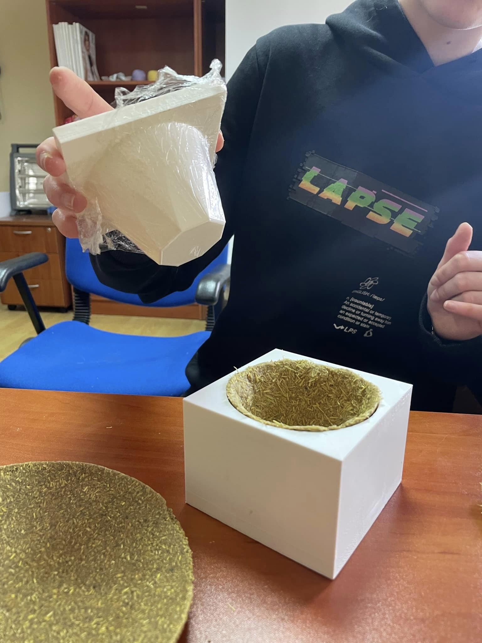 By using 3D printed molds, students are creating the final design such as: plates & cups.