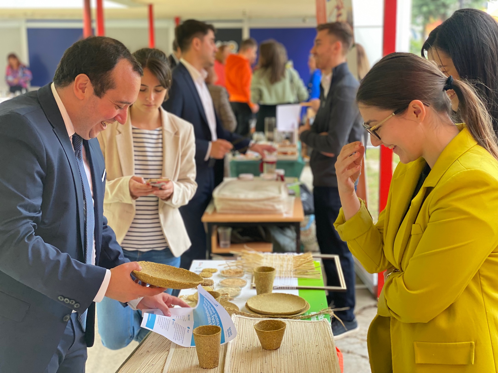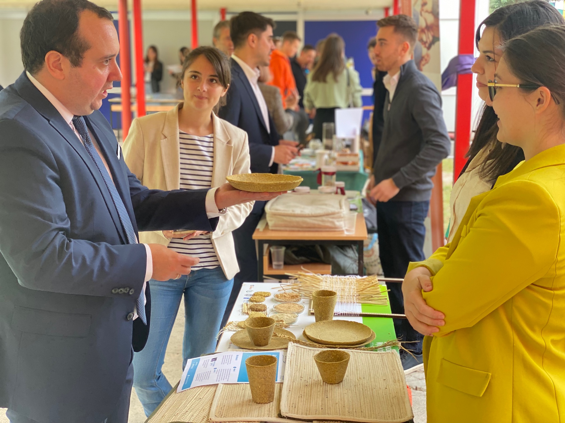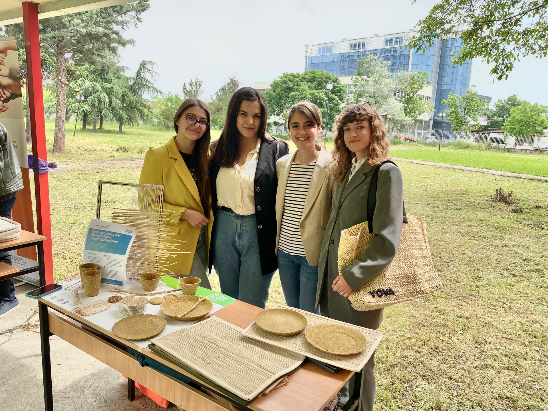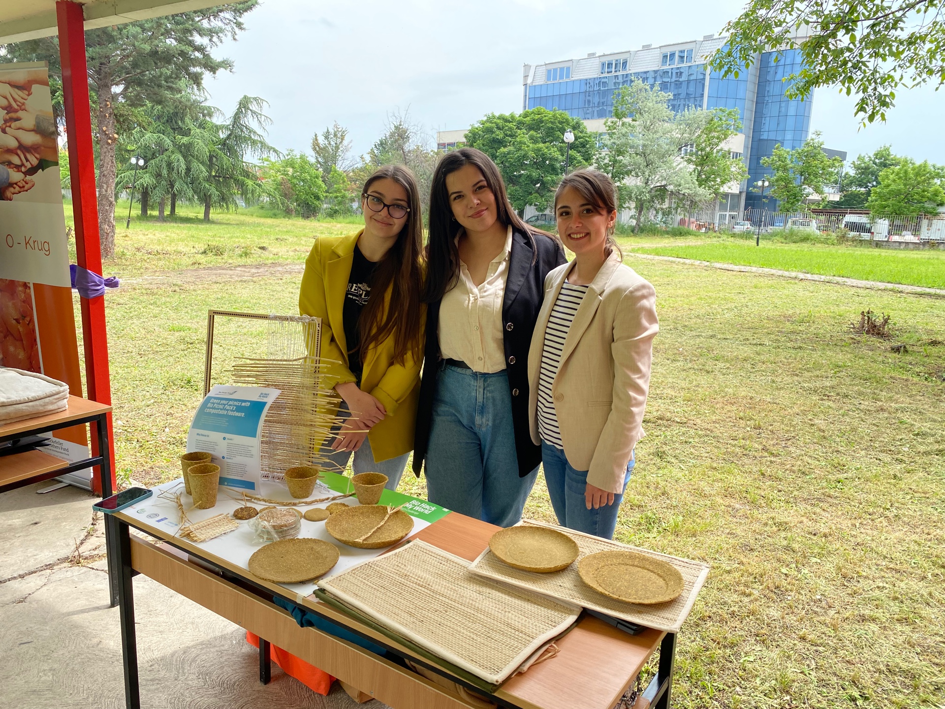 We presented two #biowaste ideas: A picnic set created from milled rice straw and husk and the process of creating rice fiber from rice straw.
