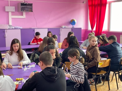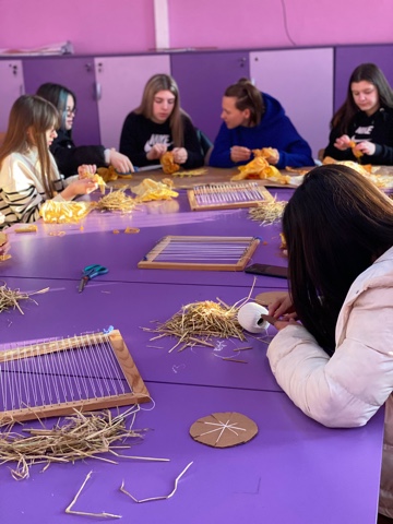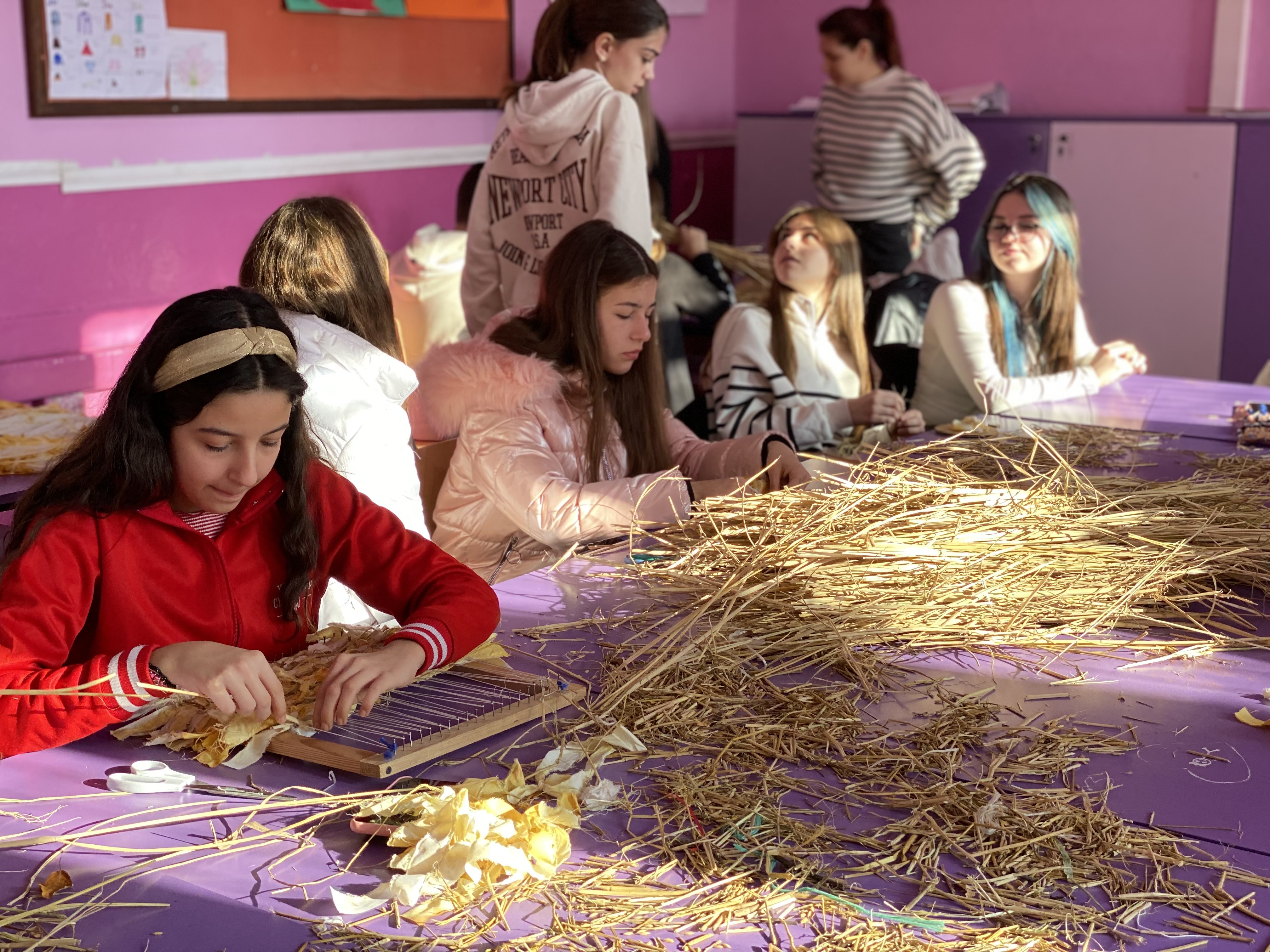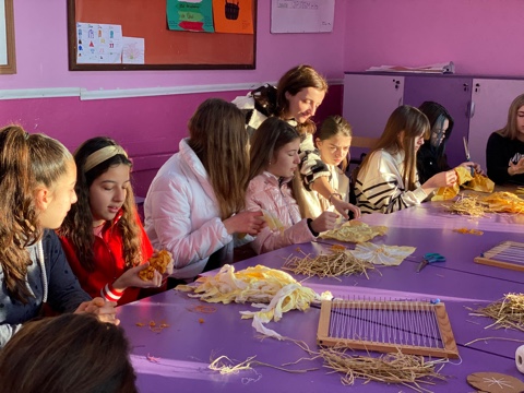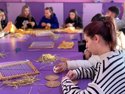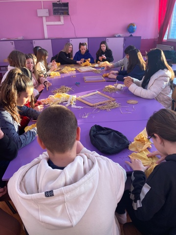 During the second workshop, students from the primary school “Malina Popivanova” from Kochani managed to learn something new and build on the already acquired knowledge. Irina Tosheva, once more as the workshop mentor, introduced them to creating designs from recycled material. The youngsters wove their fabrics from rice waste, or more precisely, rice straw.