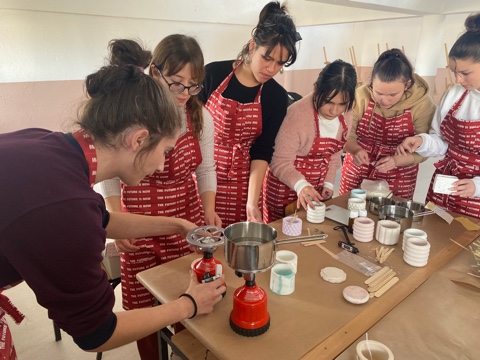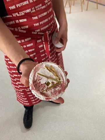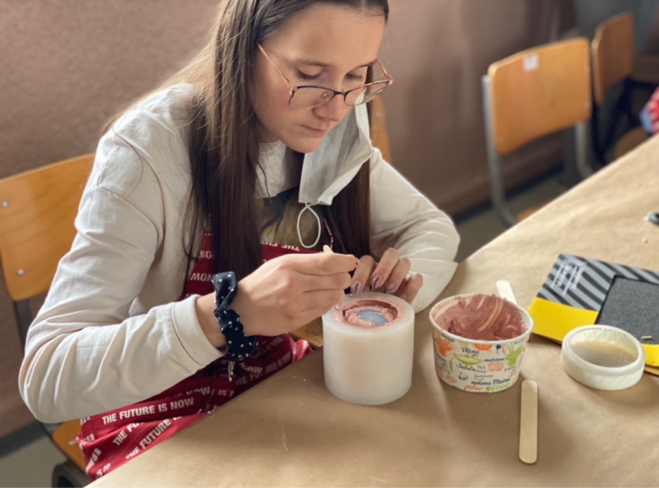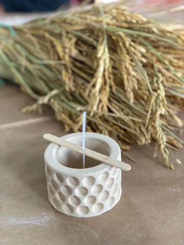 As our mentor, she helped us make biodegradable molds for vases from 3D printers; we created cement vessels including rice husk and straw, and then filled them with soy wax. This type of wax does not emit harmful chemicals, and is thus a sustainable alternative. Moreover, it contains high-quality concentrated, undiluted fragrant oils that do not contain alcohol.