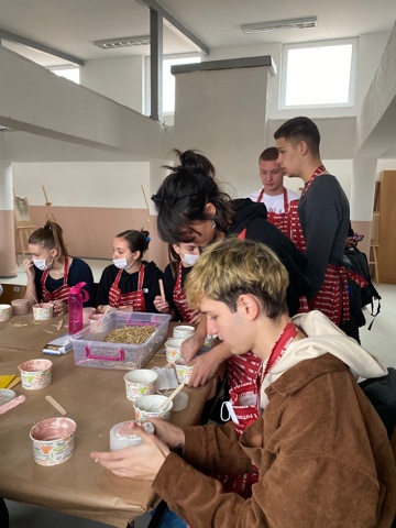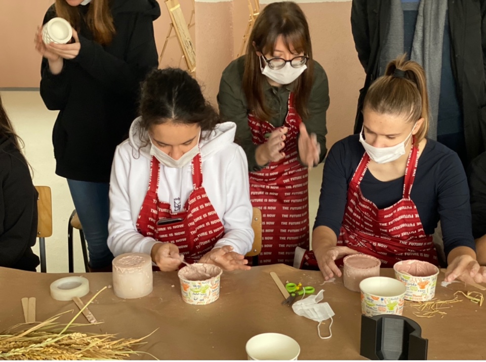 In the same group, together with our forerunner of the “home décor & rice waste” 2-day’ workshop Marija Joshevska @mmcreations.art, we made vases at the “Ljupcho Santov” high school in Kochani.