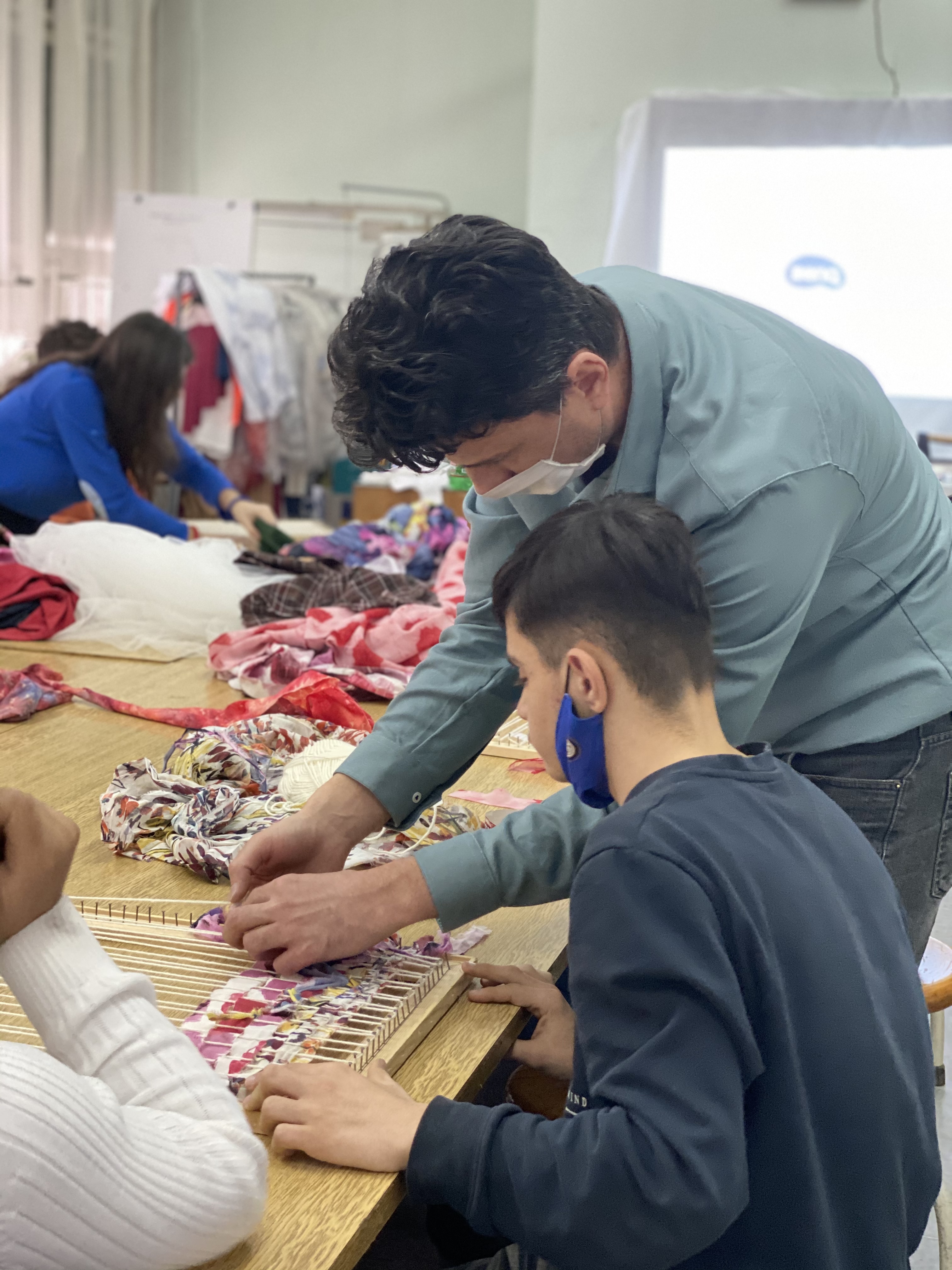 During the workshops, we introduced them to fashion techniques for upcycled design of clothes and accessories. The youngsters weaved original patterns using old fabric leftovers, which later on would be implemented in a final product. They unleashed maximum potential with zero waste for the environment.
