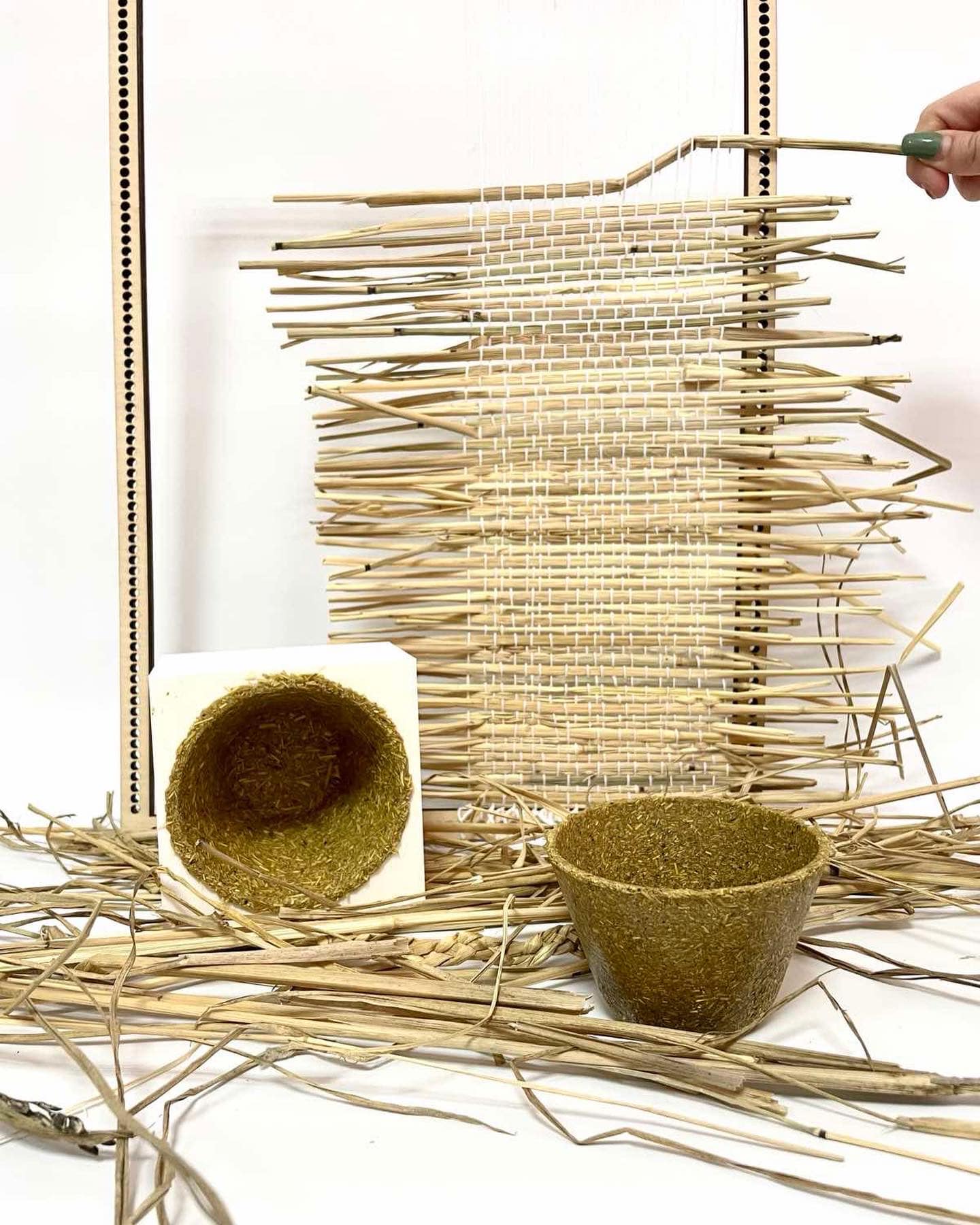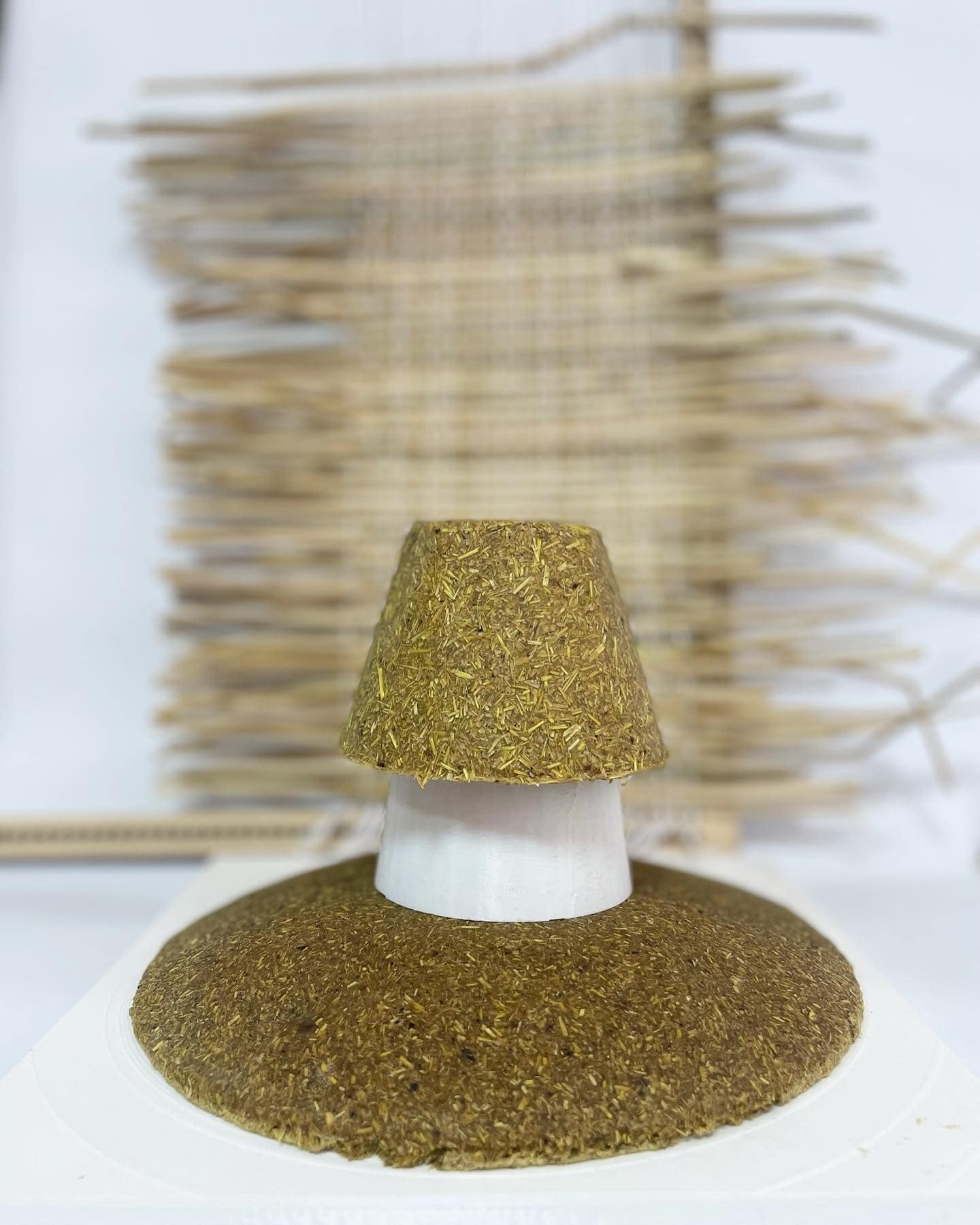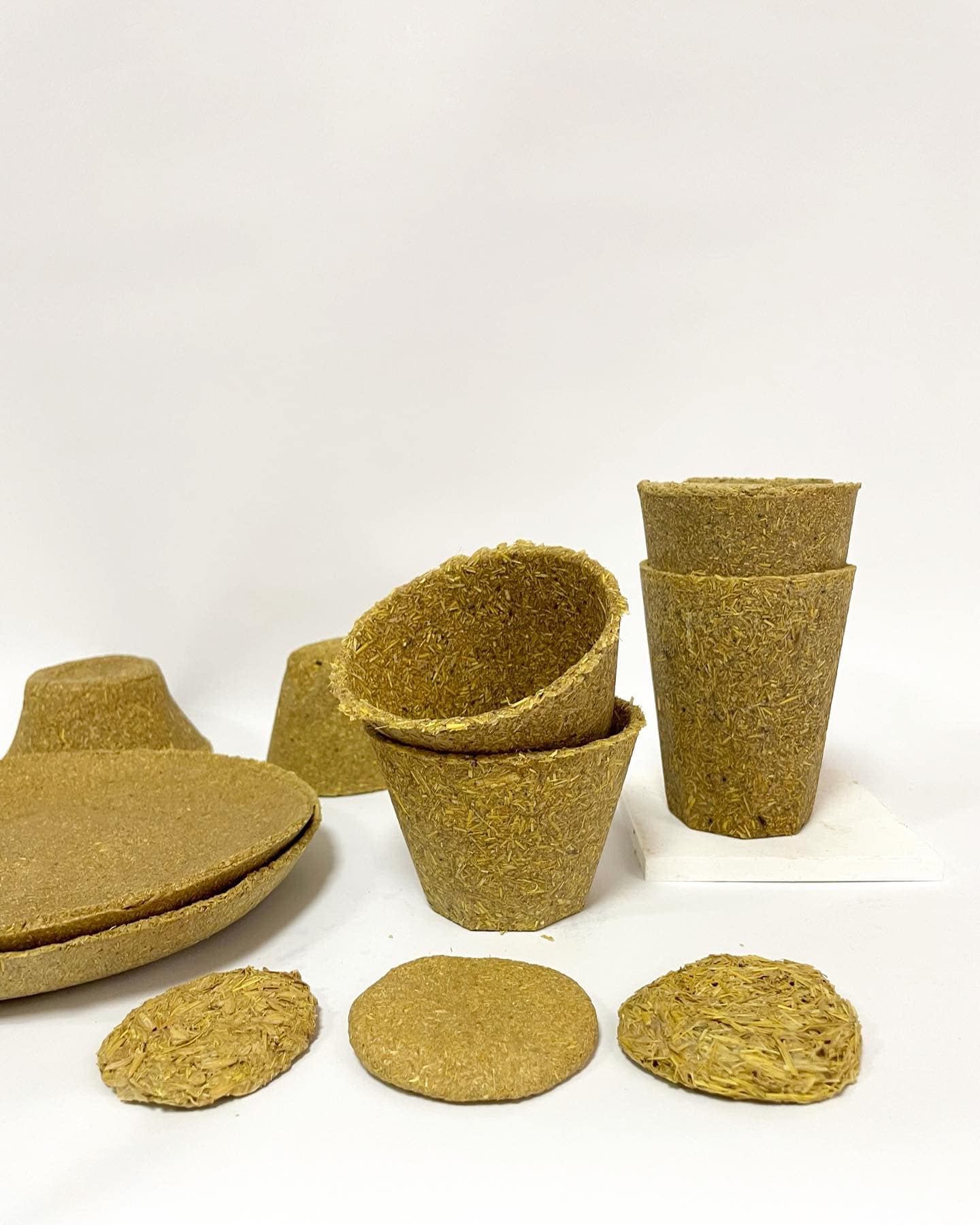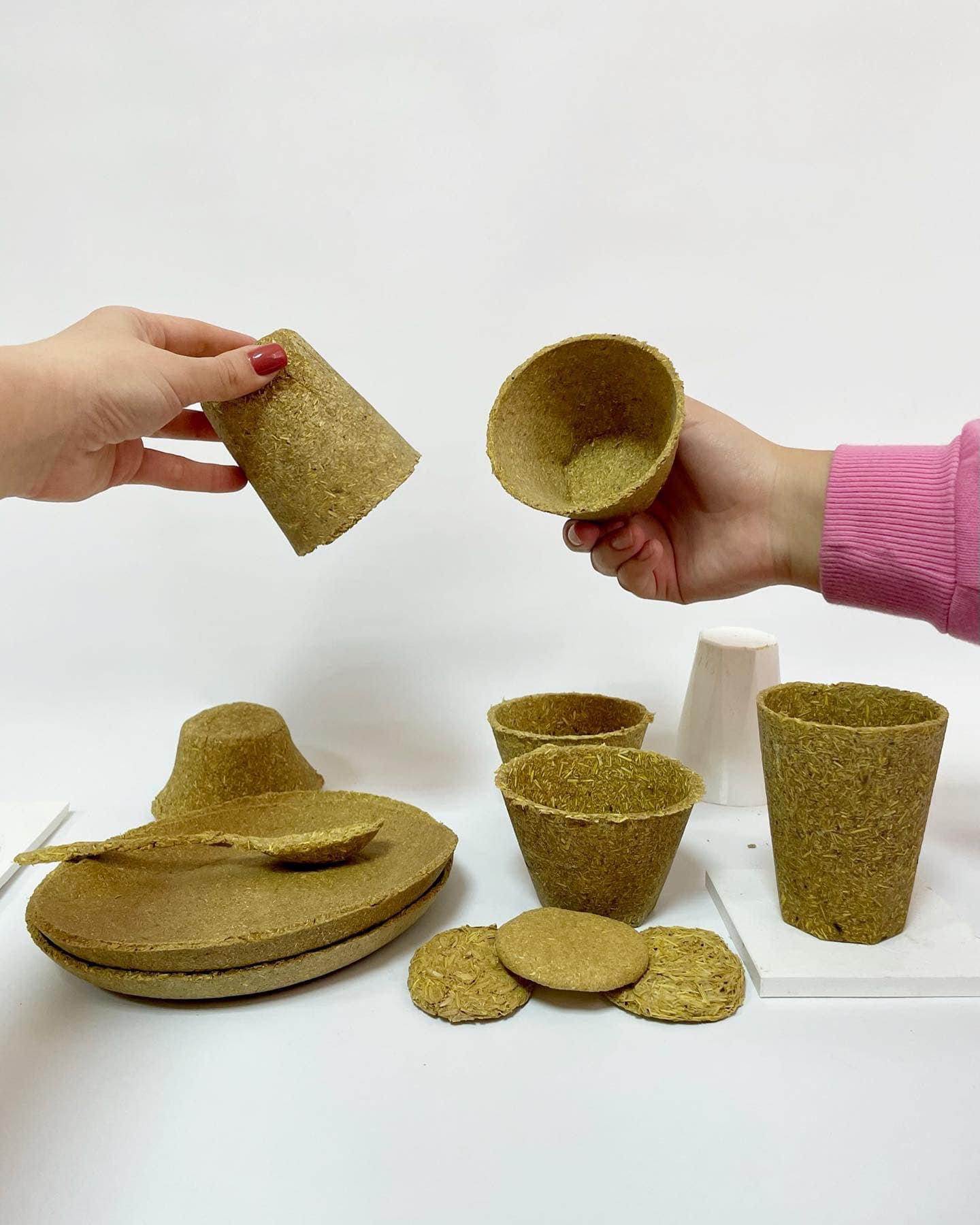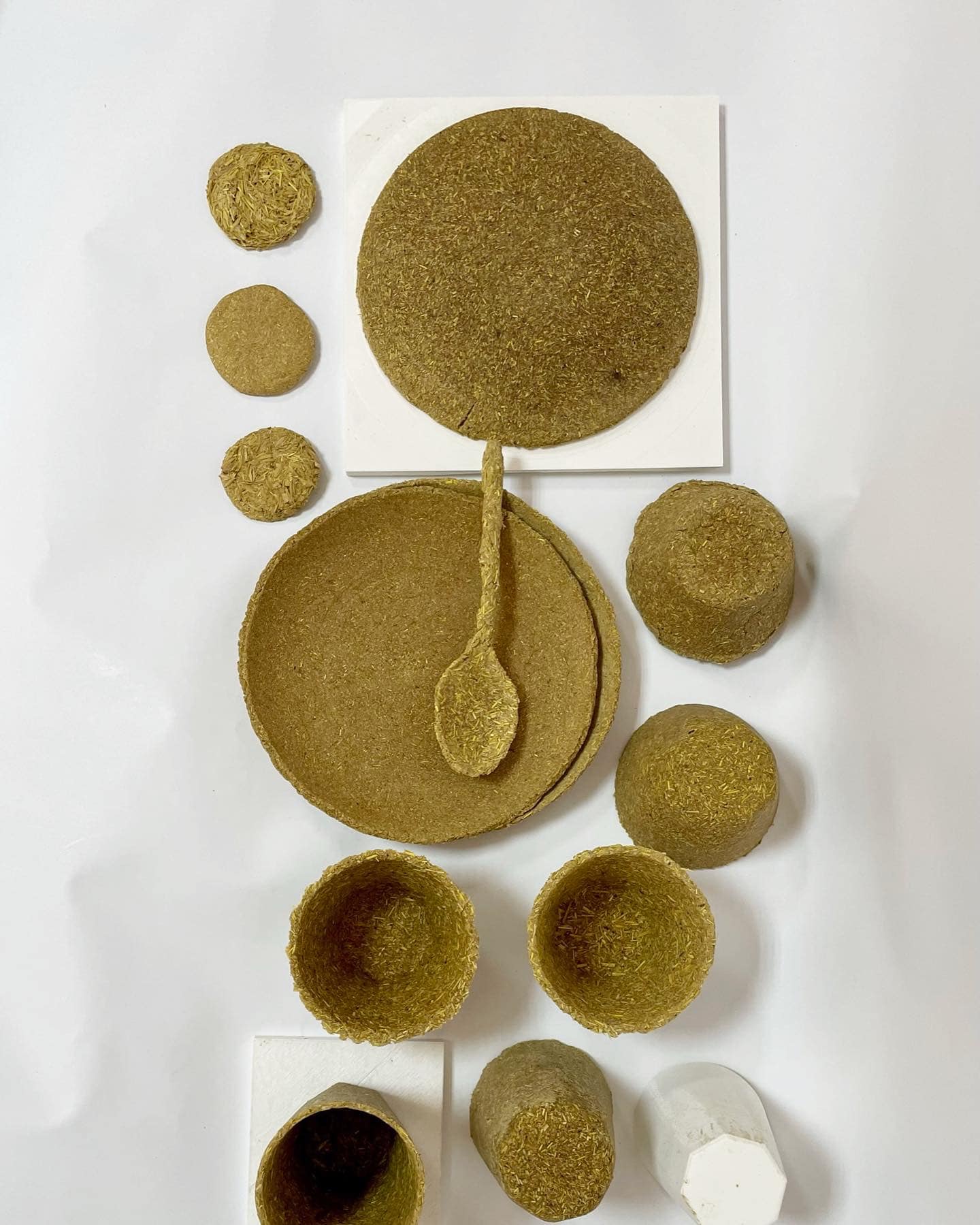 Prototypes serve as a test of a new product design. Work in progress: the plates & cups are created from milled rice straw, husk with natural glue.